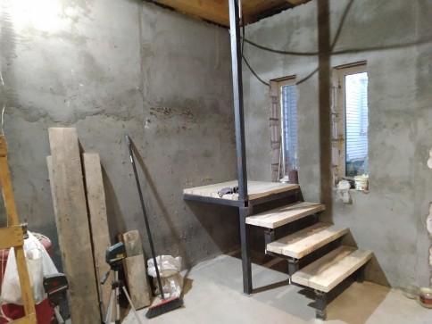 Ступени массив дерева.Карскас металл.Поручни труба.