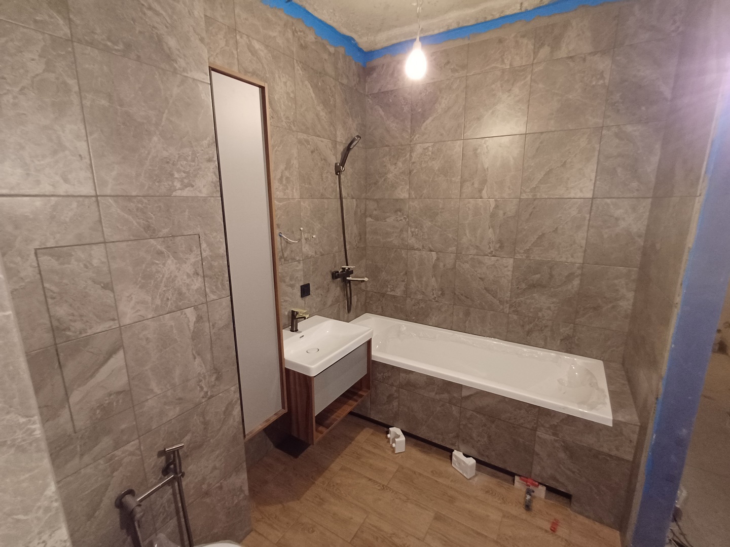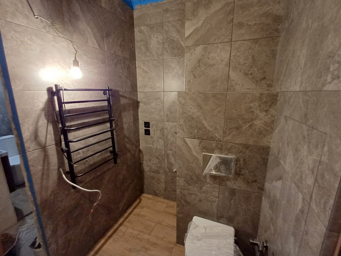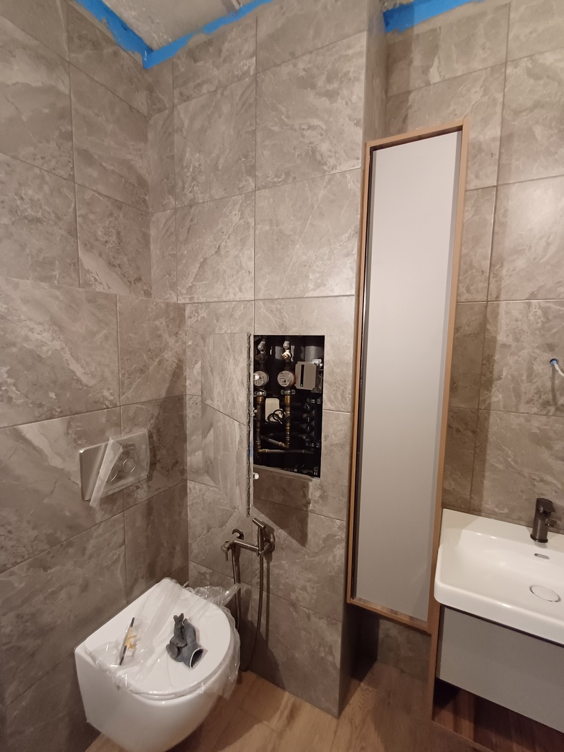 17 дней и одна ночь.2 коллекторных узла/1 с антипротечкой/.2 короба с лючками.Туалет + ваннная.Трубы и канализация в стены.Эпоксидная затирка.