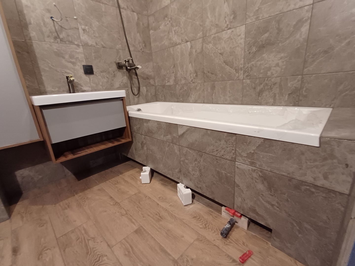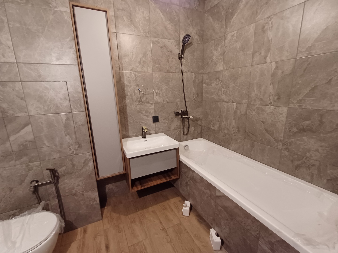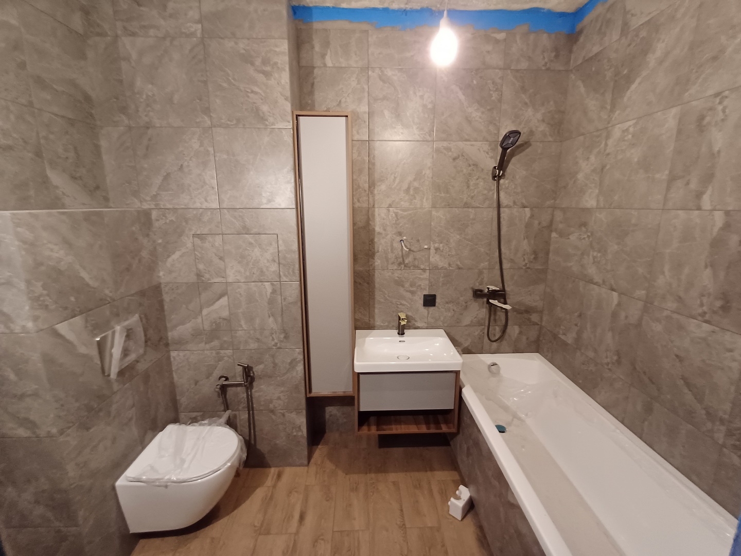17 дней и одна ночь.2 коллекторных узла/1 с антипротечкой/.2 короба с лючками.Туалет + ваннная.Трубы и канализация в стены.Эпоксидная затирка.