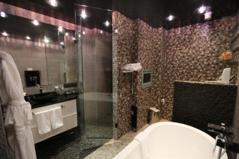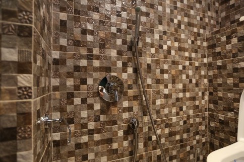 Пол мозаика,стены керамика.