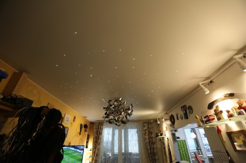 Потолок:натяжной.Звёздное небо.