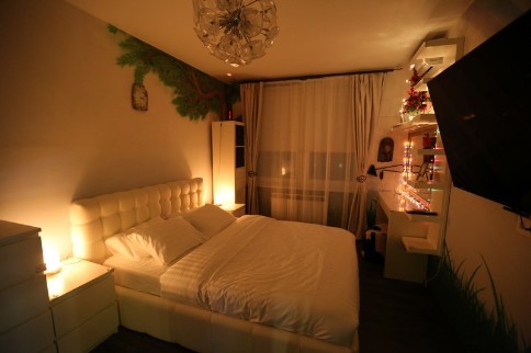 Потолок:натяжной.Освещение светодиодное.