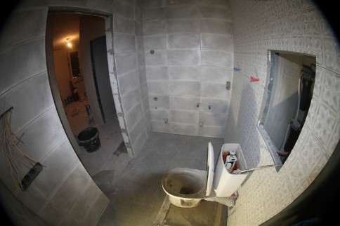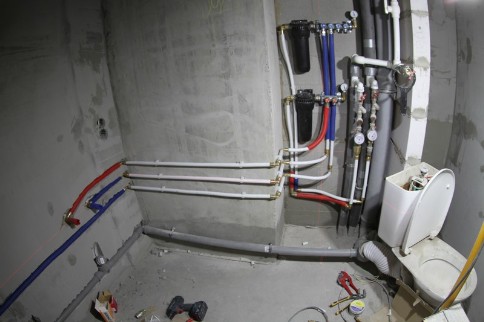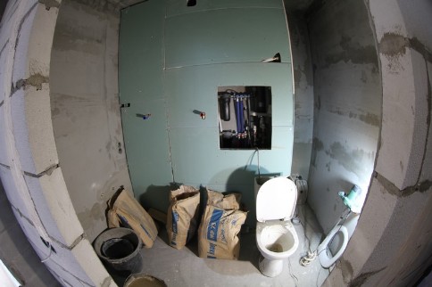 Стены  керамика/покраска.Пол керамогранит.Разводка воды/фильтры/канализация.Шумоизоляция стояк.Укладка теплого пола.