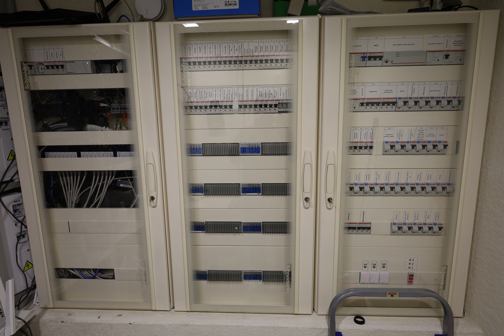 Умный дом Lutron.Всё остальное ABB ,реле приоритетов Legrand,защита от перепадов Werlok,стабилизаторы