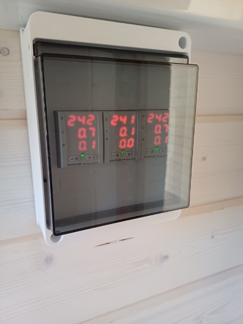 Цифровая индикация напряжения во всех фазах.Индикация нагрузки на сеть в Амперах/ваттах.Защита от перепадов напряжения.