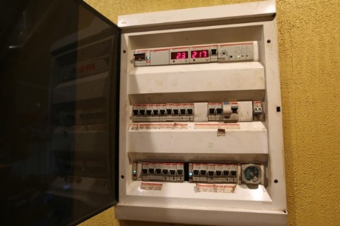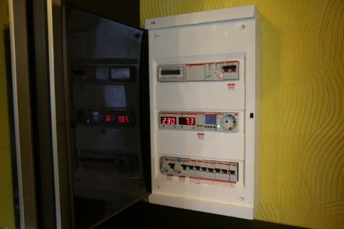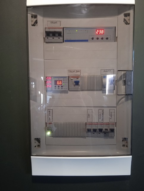 Щиток дома Яма.Автоматы + дифы.Цифровая индикация напряжения в сети/нагрузки на сеть в Амперах.