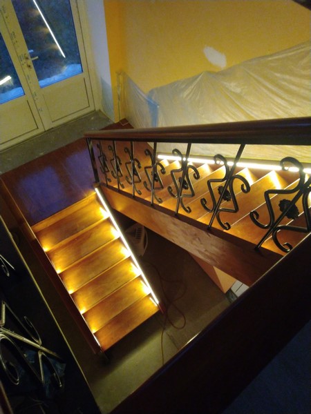Ступени - клееный массив,каркас металл.Подсветка светодиодная.