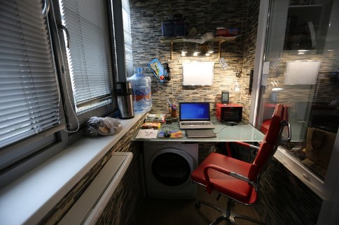Стеклянный стол - детям делать уроки,под ним скшилка.